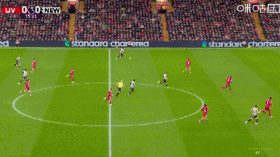 第36分钟,戈登禁区右路低射远角破门,纽卡1-0利物浦
